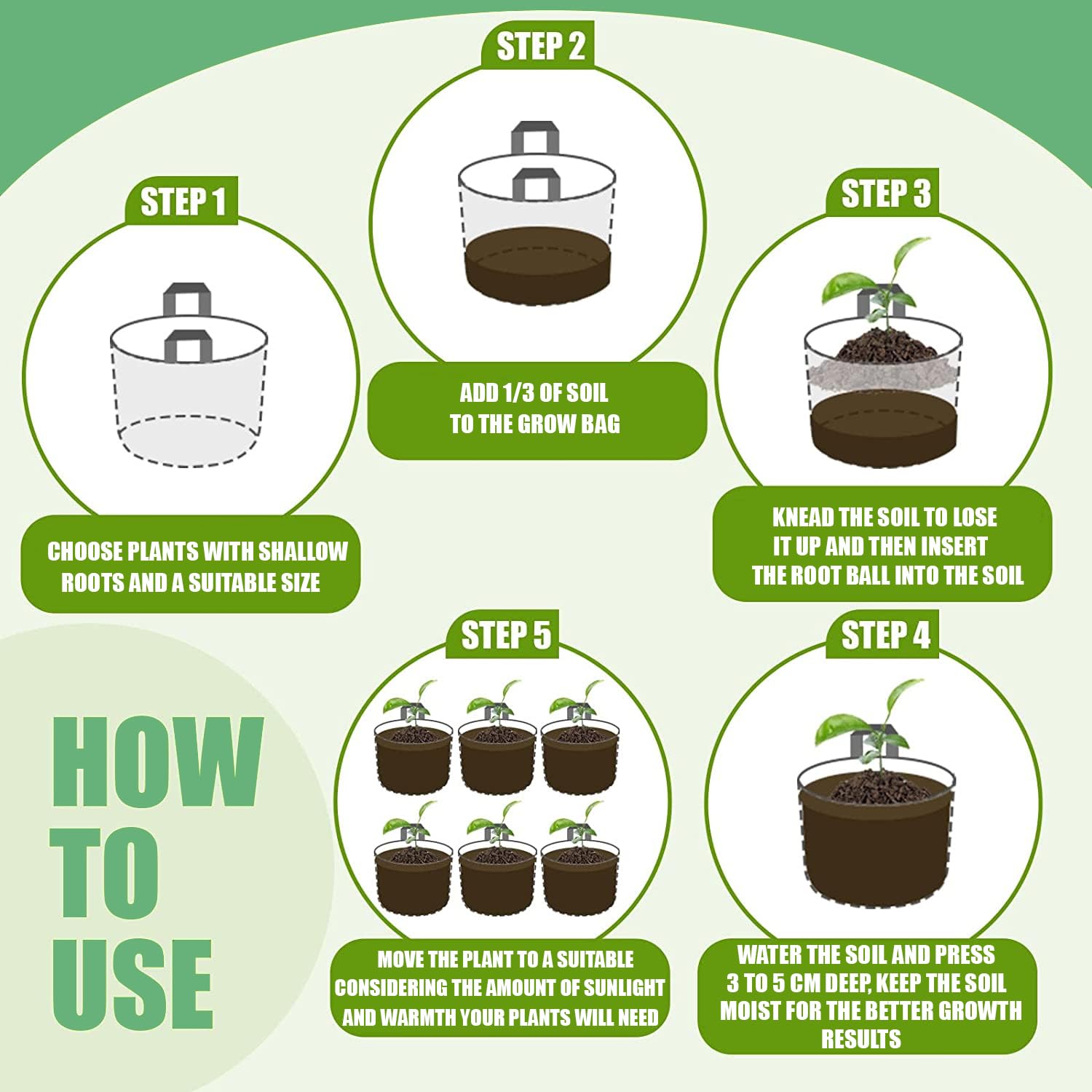 Geo-Growâ„¢ -Geofabric Grow Bags for Planting - 5pcs Combo with FREE 100 VEGETABLE SEEDS MIX VARIETY